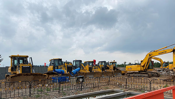 山東某大型建筑施工工地,成套采購山推系列設備,推土機、壓路機、平地機等進行場平、排土作業,山推設備以動力足、質量好、效率高、故障率低贏得該工地青睞。