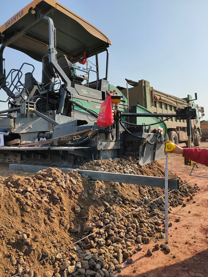 經(jīng)過多品牌攤鋪效率對比,吳總選定了擁有290馬力的可伸縮的山推C5快速攤鋪機(jī)。吳總定車后,山推道機(jī)銷售人員只用了3天時間就把嶄新的攤鋪機(jī)交付到了嘉興快速路的工地上,每天攤鋪4000噸水穩(wěn)料。