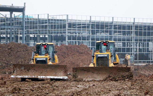 山推DH17-C2推土機等工作于南京某建筑工地,山推推土機駕駛方便、靈活,工作效率高、油耗低。濕地履帶很好的適應南方潮濕泥濘的工作場景,駕駛舒適、視野寬闊,客戶口碑極好,回購率一直很高。