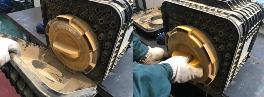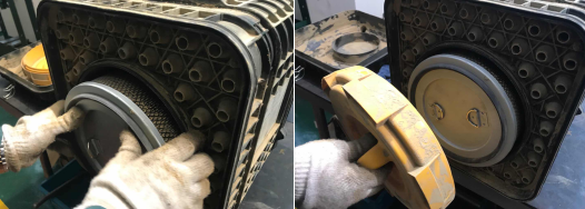 6、確保濾芯安裝牢靠后,用雙手旋入濾芯密封蓋,如有出現(xiàn)濾芯密封蓋無法完全旋入的情況,應檢查濾芯是否有卡滯、安裝不到位的情況,濾芯密封蓋安裝無誤后,安裝側(cè)蓋板,依次緊固空氣濾清器周圍的卡箍,檢查空氣濾清器密封性,確保各部件沒有泄漏。