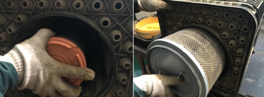 大家在日常使用山推設備時,應時常關注空濾指示器顏色,如果空濾指示器顯示紅色,表明空濾內(nèi)部已堵塞,應及時進行清理或更換濾芯。